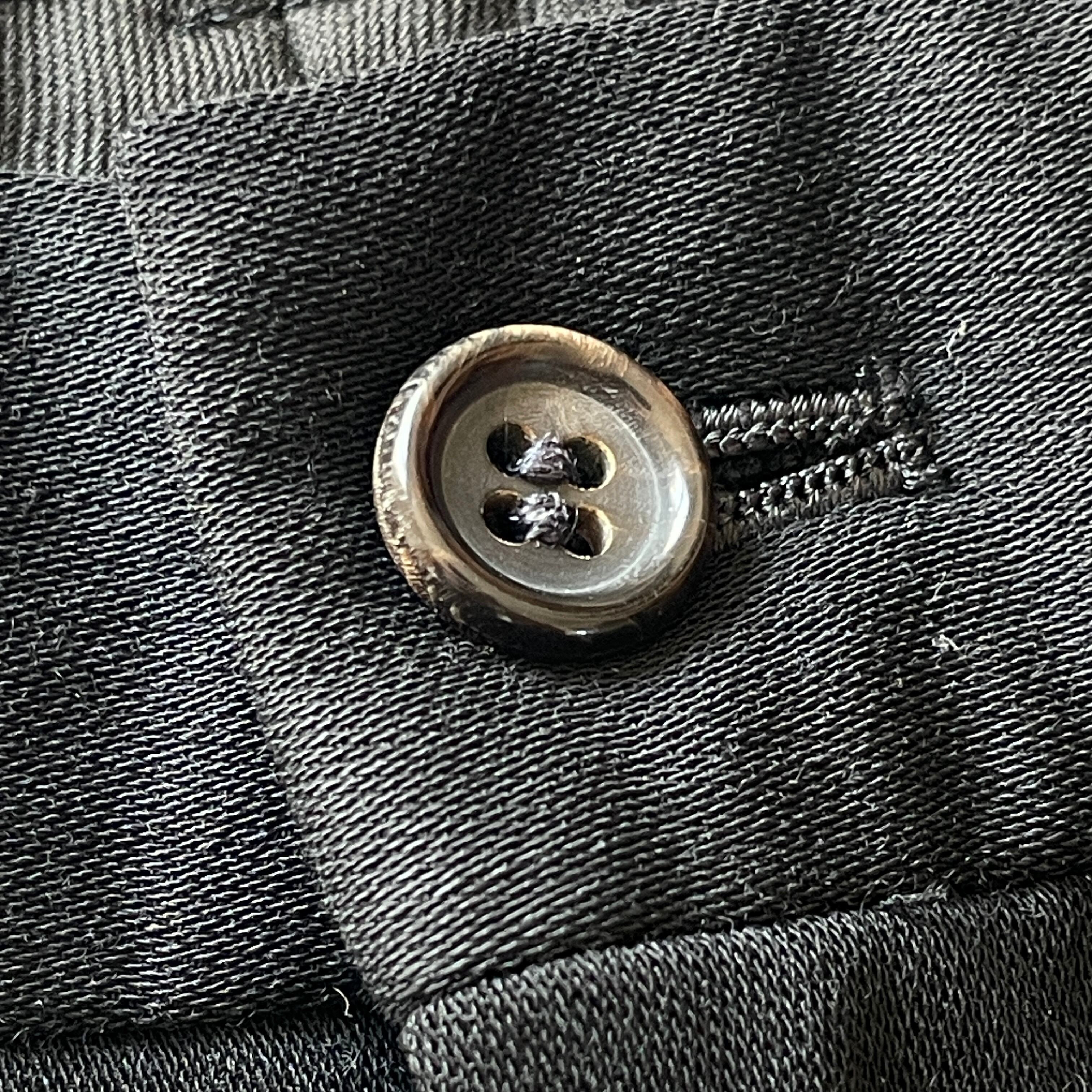 本品は、1990年から2003年までデザイナーを務めた田中啓一氏による、いわゆる「田中オム」期の1990年S/S(春夏コレクション)と、超最初期のスラックスです。気品漂う深いブラックに、程よい毛羽感と柔らかな風合いの生地が特徴の貴重なアイテムとなっています。