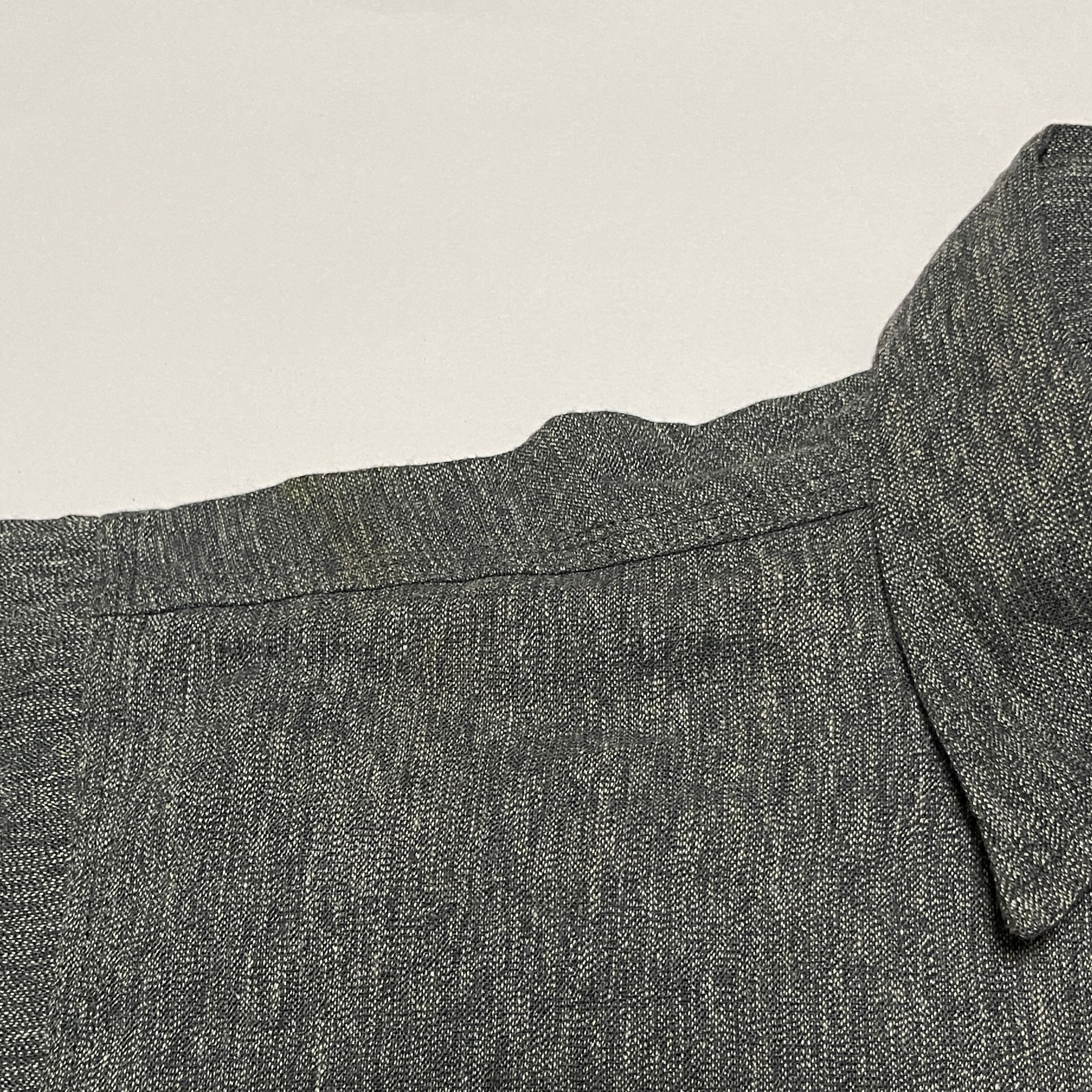 シャンブレーは生地の織り方による名称で、「縦糸に色糸」「横糸に白糸」を用いた「平織」になります。その中でも黒いシャンブレー生地は、汚れが目立ないことから、50年から60年代当時のアメリカのワークウェアとしてBIG MACなどの「ストア系ブランド」を筆頭に生産していたと言われています。