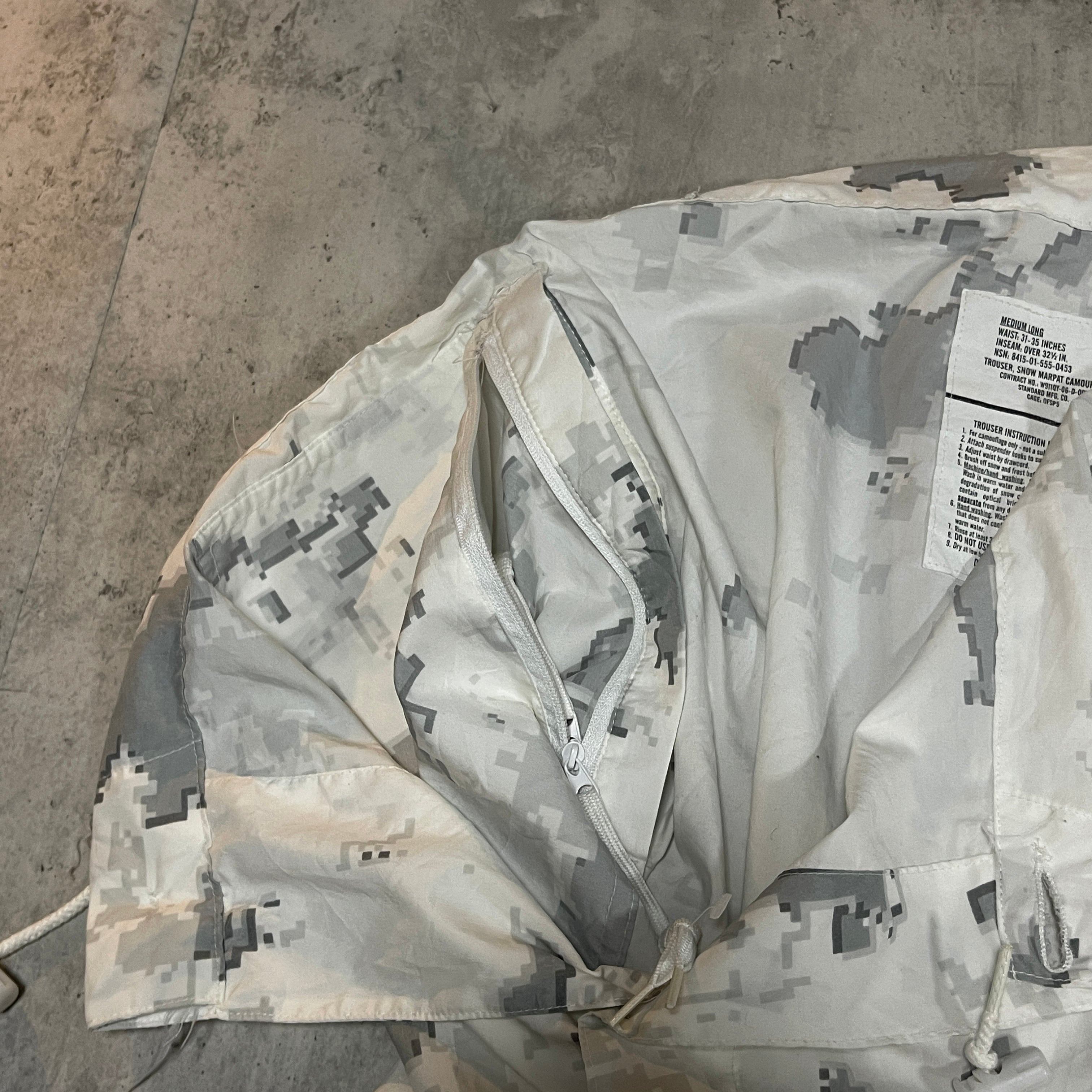 2006年製造のアメリカ軍海兵隊(USMC)のスノーカモフラージュオーバーパンツです。