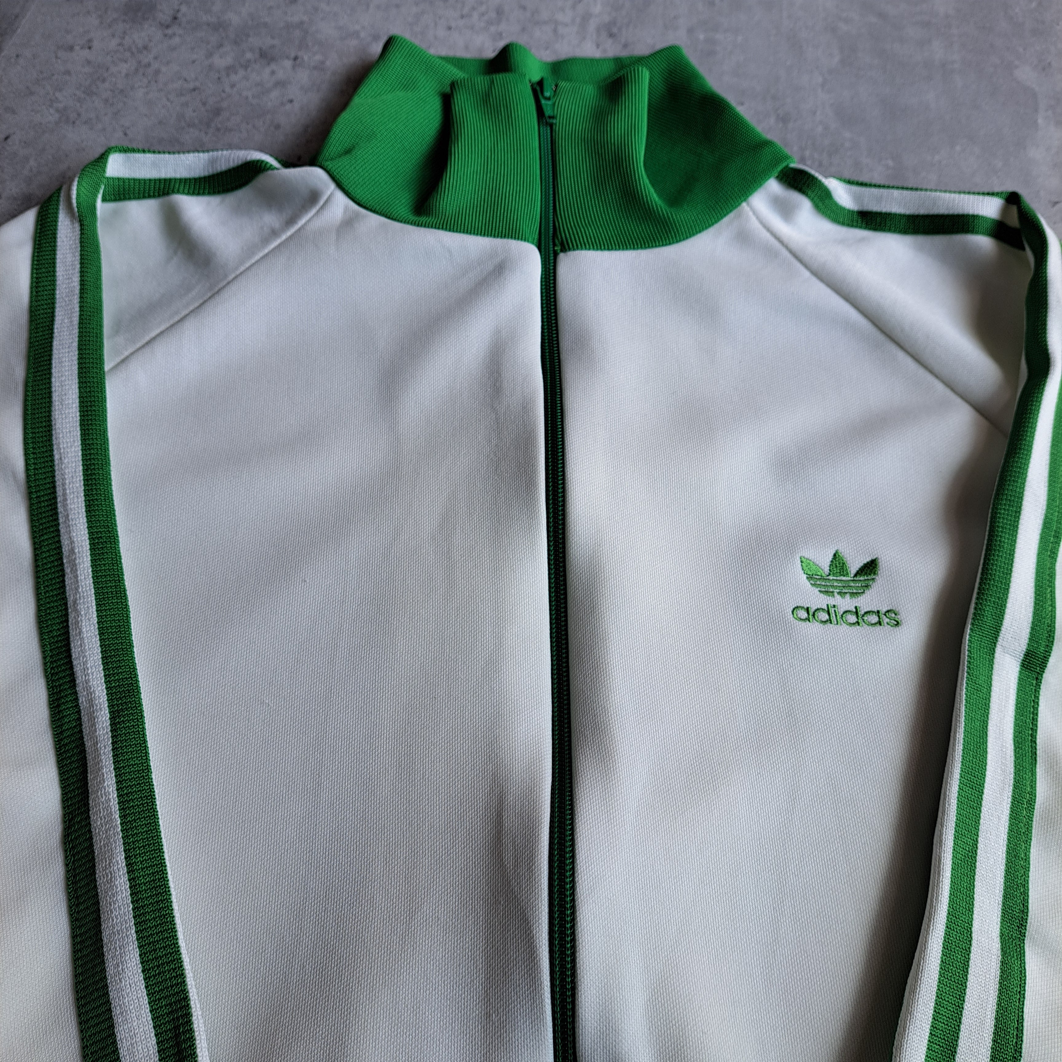 80s デサント 緑 白 Adidas トラックジャケット 無地 L