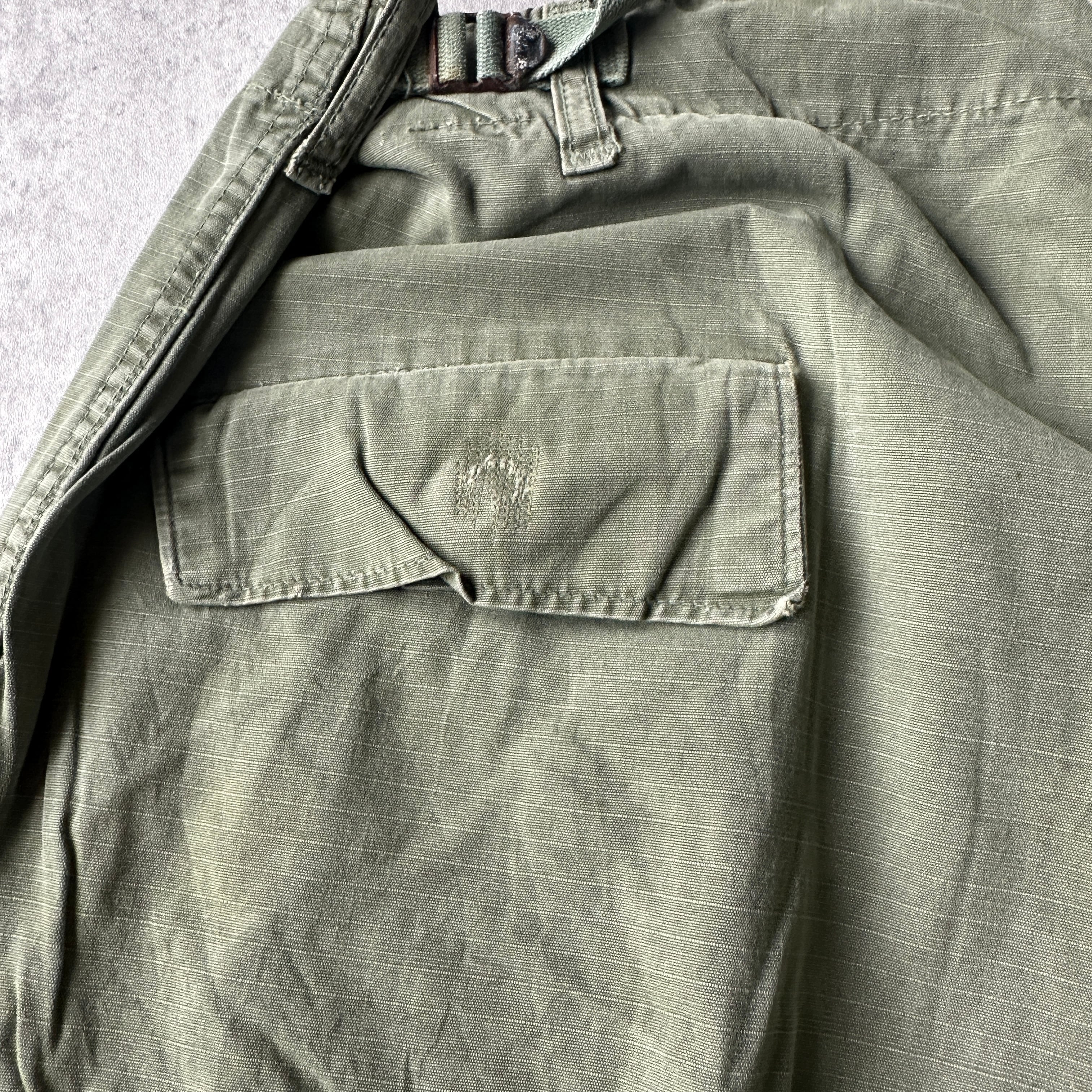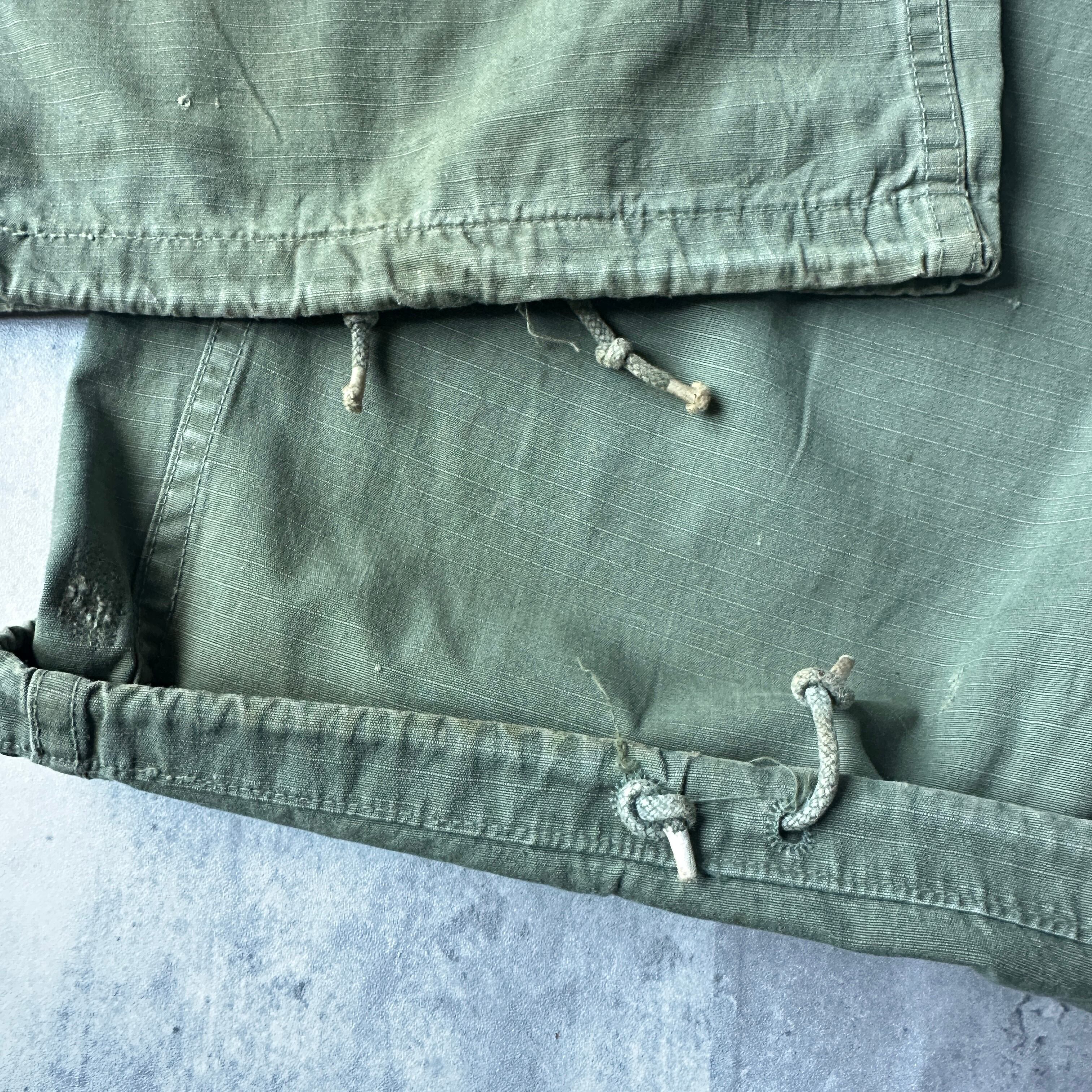 ジャングルファティーグといえばジャケットを想起させる方が多いですが、このパンツはジャケットと合わせて着用されていたものです。ベトナムホーチミンの戦争博物館などで実物を着用しているマネキンなどあるので、個人的には物凄く感慨深いウェアの一つです。