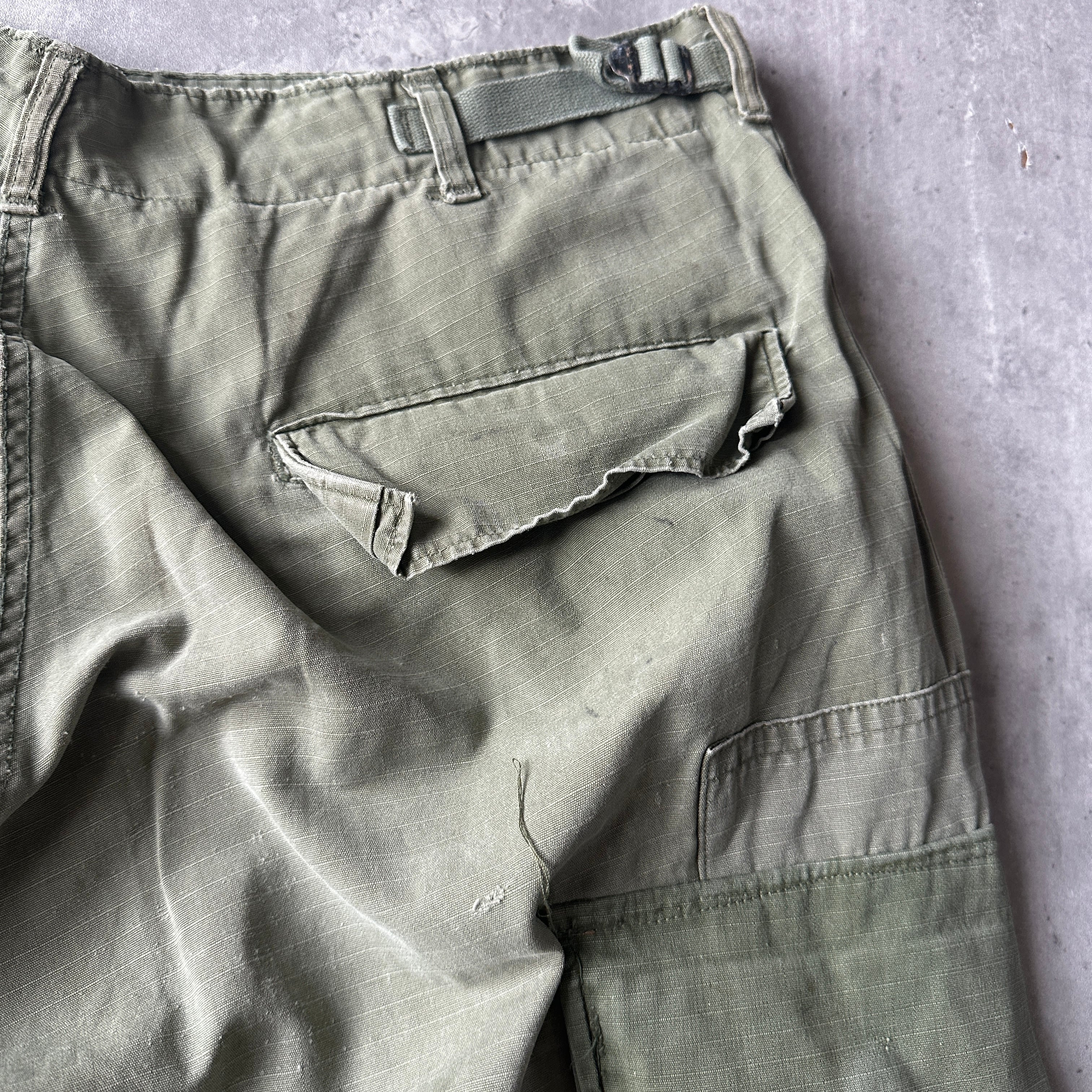 ジャングルファティーグといえばジャケットを想起させる方が多いですが、このパンツはジャケットと合わせて着用されていたものです。ベトナムホーチミンの戦争博物館などで実物を着用しているマネキンなどあるので、個人的には物凄く感慨深いウェアの一つです。